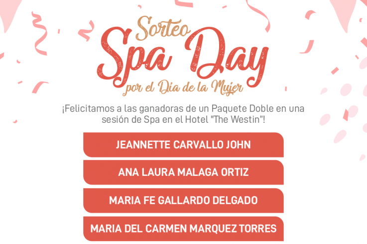 Felicitamos a las 04 ganadoras del Sorteo de Day Spa por el Día de la Mujer que se llevaron un paquete doble en una sesión de Spa en el Hotel “The Westin”